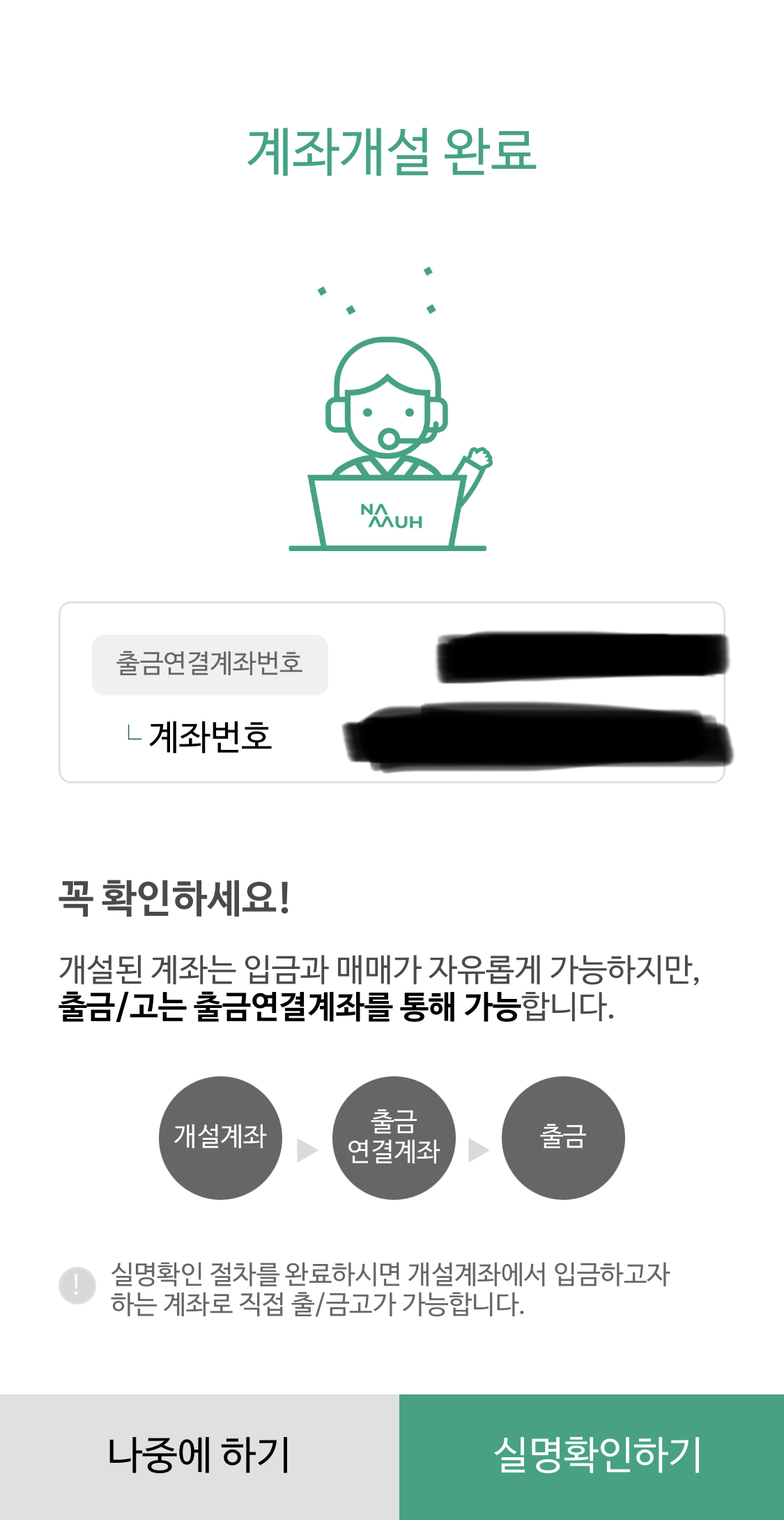 또한, 현금인출은 출금연결계좌가 있어야 하므로, 즉 금투자를 하시면 계좌는 두 개 가지게 됩니다.